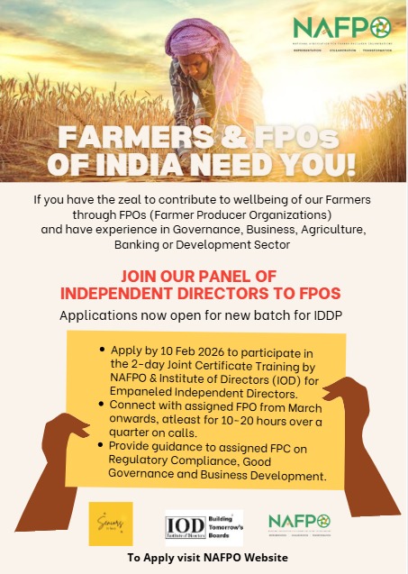The Independent Director Development Program is an initiative taken by National Association for Farmer Producer Organisations (NAFPO) to support and facilitate Farmer Producer Organisations (FPOs) with building governance standards, ensuring statutory and fiduciary compliances and enhancing the credibility of the organisations with placing management and administration systems.